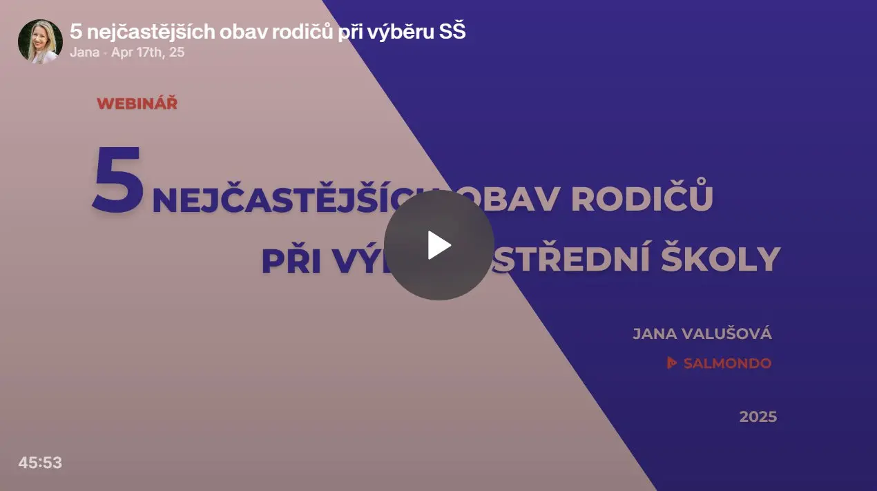 🎓 Webinář zdarma pro rodiče dětí ze 7., 8. a 9. tříd, kteří nechtějí nechat volbu střední školy na náhodě – a touží svému dítěti skutečně pomoct najít smysluplný směr.
